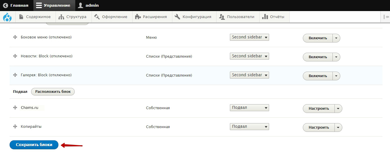Нажимаем кнопку Сохранить блоки