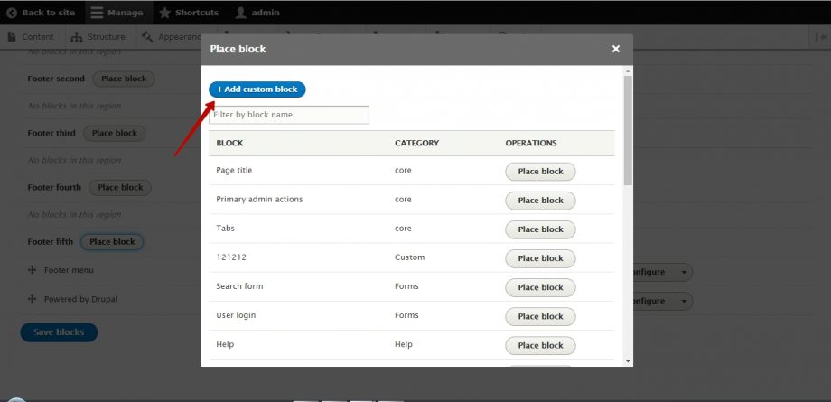 Выбрать Add custom block