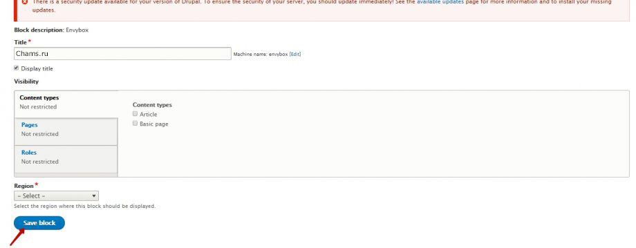 Нажать кнопку Save Block