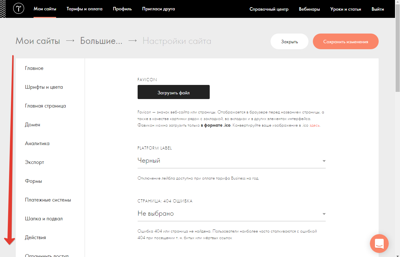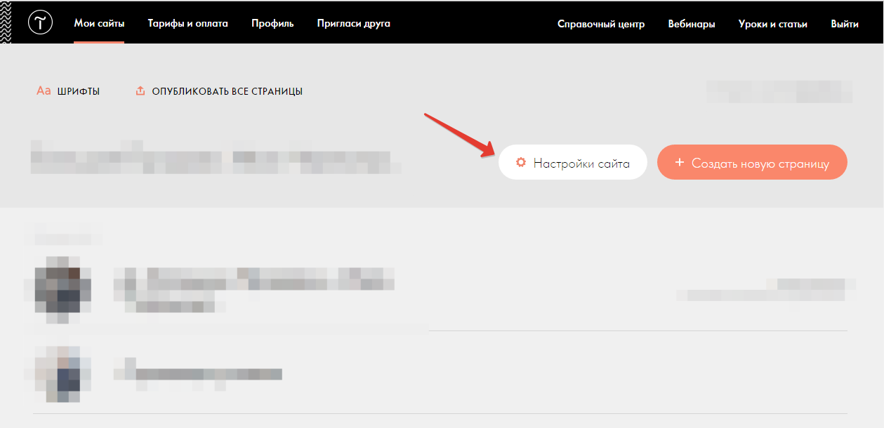 Нужно нажать на шестернку «Настройки сайта»